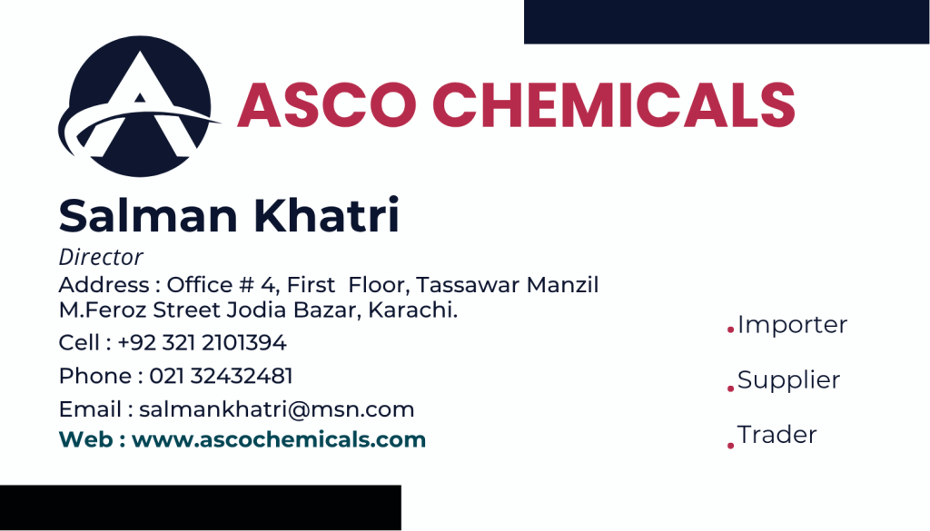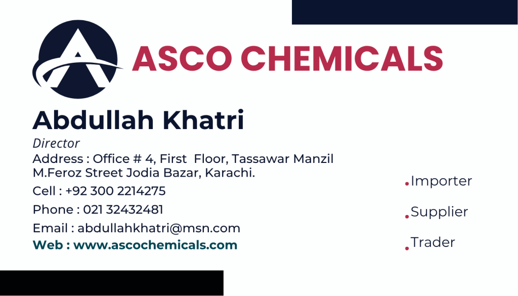 ASCO Chemicals is a trusted importer and supplier of industrial chemicals and dyes, supporting Pakistan’s textile, packaging, printing, food, and pharmaceutical industries.
